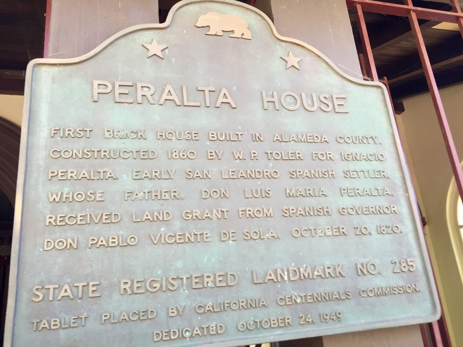 In a small courtyard in San Leandro we found Rancho San Antonio (Peralta Grant) CHL 246. This land grant was given to Don Luis Peralta by Governor Pablo de Sola, the last Spanish Governor.